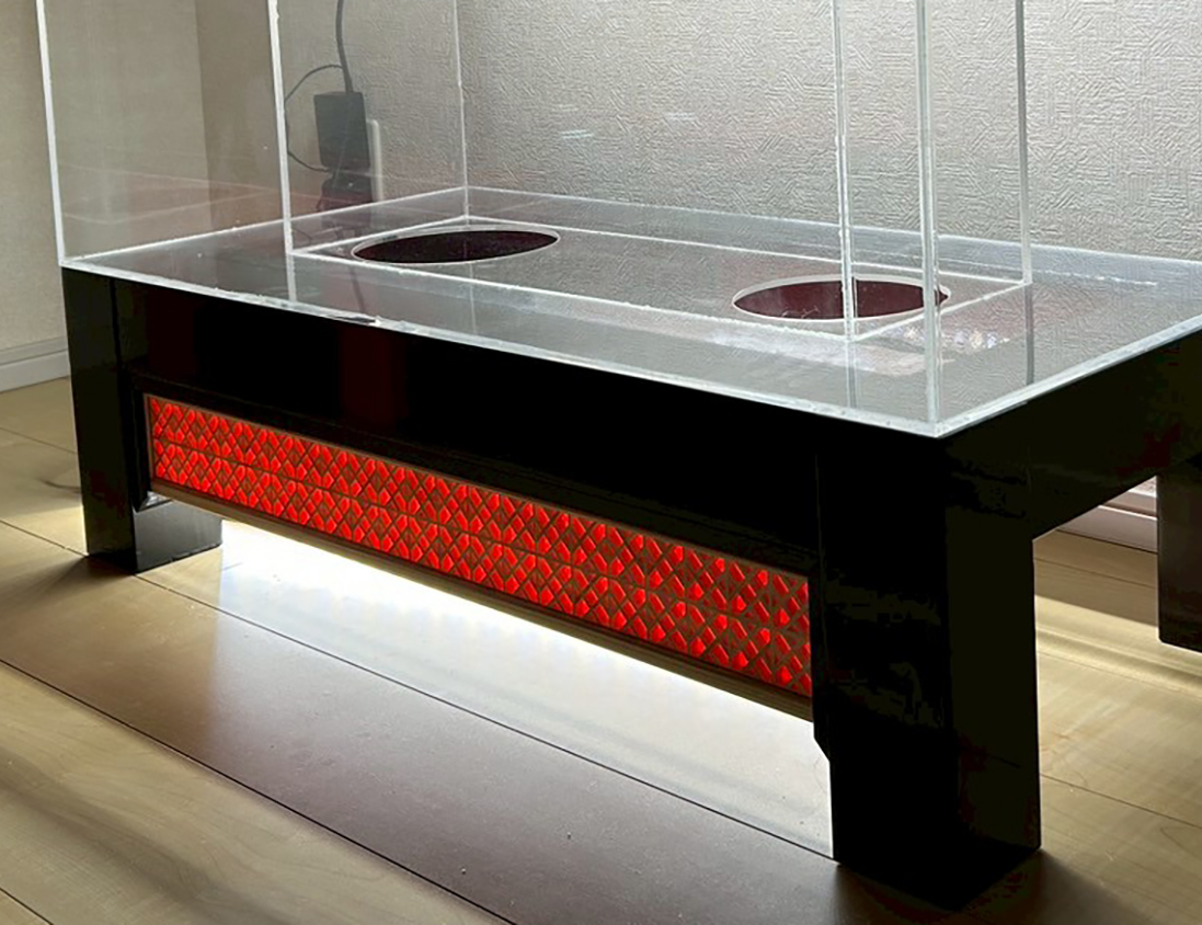 トンネル水槽の台座に組子を使用することで、インテリアとしての魅力と価値を高めます。