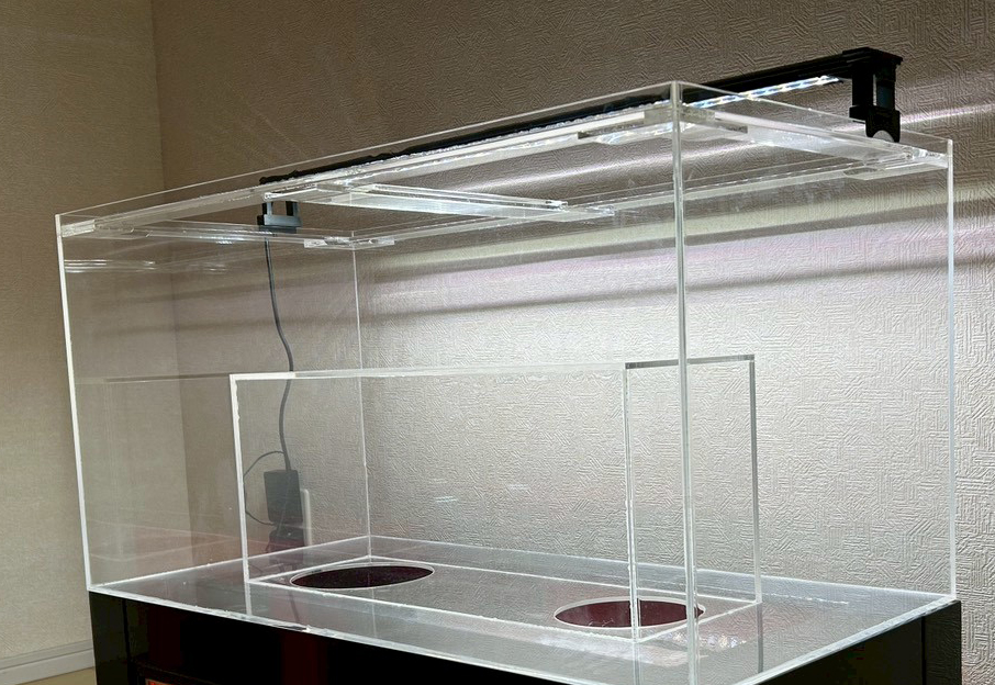 ガラスの1/3の重量。軽量で安全性の高いアクリル水槽を使用。